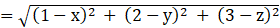 (1 – x)2 + (2 – y)2 + (3 – z)2 = (3 – x)2 + (– 2 – y)2 + (– 1 – z)2