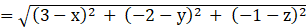 P ≡ (x, y, z) and B ≡ (3, – 2, – 1)
