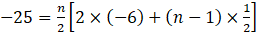 How many terms of the A.P. – 6,-, – 5, … are needed to give the sum –25?