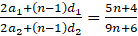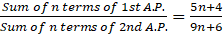 The sums of n terms of two arithmetic progressions are in the ratio 5n + 4 : 9n + 6. Find the ratio of their 18th terms.
