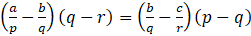 ⇒ (aqr – bpr) (q – r) = (bpr – cpq) (p – q)