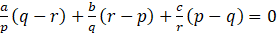 ⇒ p (p – q) (2br – 2cq) = r (q – r) (2aq – 2bp)