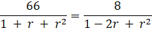 66(r2 – 2r + 1) = 8(1 + r + r2)