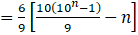 = (6/9)[(10 - 1) + (100 - 1) + (1000 - 1) + …to n terms]