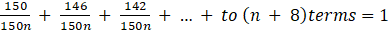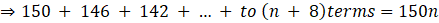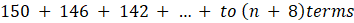 Sn + 8 = [(n + 8)/2] × [2(150) + (n + 8 - 1)( - 4)]