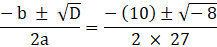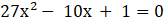 Now, in order to solve the equation we have to compare this with ax2 + bx + c = 0 where a = 27, b = - 10 and c = 1