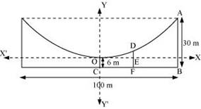 The vertex is at the lowest point of the cable. The origin of the coordinate plane is taken as the vertex of the parabola, while its vertical axis is taken along the positive y –axis. This can be diagrammatically represented as