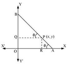 Let AB be the rod making an angle Ɵ with OX and P(x,y) be the point on it such that AP = 3cm.