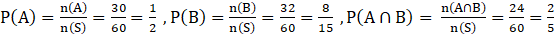 In a class of 60 students, 30 opted for NCC, 32 opted for NSS and 24 opted for both NCC and NSS. If one of these students is selected at random, find the probability that