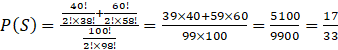 (a) Let S = The two of us will enter the same section if both of us are among 40 students or among 60 students.