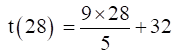 The function ‘t’ which maps temperature in degree Celsius into temperature in degree Fahrenheit is defined by