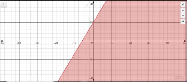 Solution region of the given inequality is below the line 3y – 5x < 30. (That is origin is included in the region)