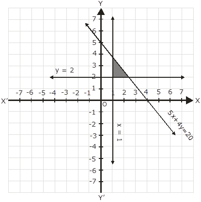 5x + 4y ≤ 20, x ≥ 1, y ≥ 2