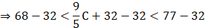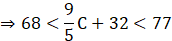 A solution is to be kept between 68° F and 77° F. What is the range in temperature in degree Celsius (C) if the Celsius / Fahrenheit (F) conversion formula is given by