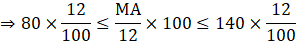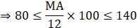 Where MA is mental age and CA is chronological age. If 80 ≤ IQ ≤ 140 for a group of 12 years old children, find the range of their mental age.