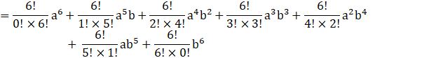 Thus, (a + b)6 = a6 + 6a5b + 15a4b2 + 20a3b3 + 15a2b4 + 6ab5 + b6