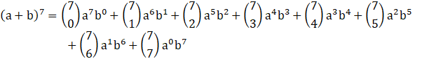 Thus, (a + b)7 = a7 + 7a6b + 21a5b2 + 35a4b3 + 35a3b4 + 21a2b5 + 7ab6 +b7