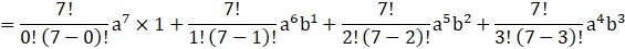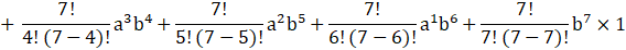 = a7 + 7a6b + 21a5b2 + 35a4b3 + 35a3b4 + 21a2b5 + 7ab6 +b7