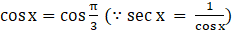 Given equation is sec x= 2