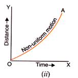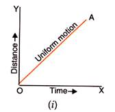 (i) As in uniform motion, the distance time graph would be a straight line along with some slope, because the equal distance is covered in equal units of time.