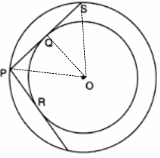 In Fig. 10.93, there are two concentric circles with centre O. PR and PQS are tangents to the inner circle from point plying on the outer circle. If PR = 7.5 cm, then PS is equal to