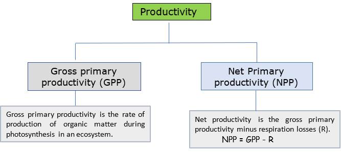 Productivity is the rate of biomass production per unit area over a period of time by the plants through photosynthesis.
