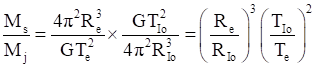 Io, one of the satellites of Jupiter, has an orbital period of 1.769 days and the radius of the orbit is 4.22 × 108 m. Show that the mass of Jupiter is about one-thousandth that of the sun.