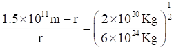A rocket is fired from the earth towards the sun. At what distance from the earth’s center is the gravitational force on the rocket zero? Mass of the sun = 2×1030 kg, mass of the earth = 6×1024 kg. Neglect the effect of other planets etc. (orbital radius = 1.5 × 1011 m).