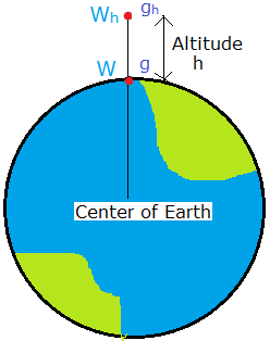 Where Wh is the weight of a body of mass m kept on h height above the surface of the earth, Let gh be the acceleration due to gravity at a height h above the surface of the earth