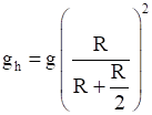 gh is the acceleration due to gravity at a height h above the surface of the earth, g is acceleration due to gravity on earth’s surface and R is Radius of the Earth