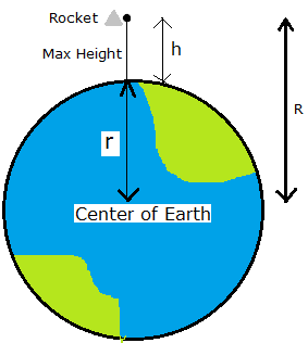 So the rocket will reach a height of 1.6 × 106 m above the surface of Earth