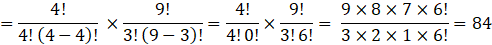 Numbers of boys are 9 out of which 4 are to be chosen which is given by 9C4
