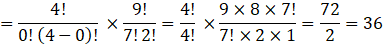 Number of ways to choose 0 girl and 7 boys = 4C0 × 9C7