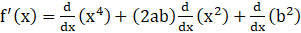 f’(x) = a2 × 4x3 + 2ab × 2x + 0