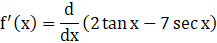 f’(x) = 2 × (sec2 x) – 7 × (sec x tan x)