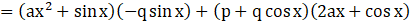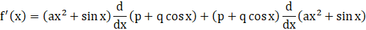 f’(x) = (ax2 + sin x) (-q sin x) + (p + q cos x) (2ax + cos x)