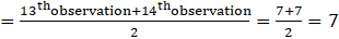 Median is the mean of 13th and 14th observations. Both these observations lie in the cumulative frequency 14, for which the corresponding observation is 7.