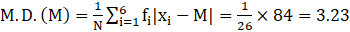 Hence, the mean deviation about the median for the given data is 3.23.
