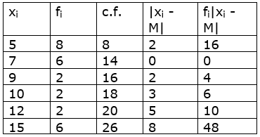 So, we can calculate the absolute values of the deviations from the median, i.e., |xi – M|, as shown in the table.