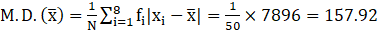 Hence, the mean deviation about the mean for the given data is 157.92.