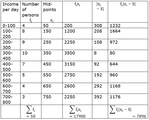 So, we can calculate the absolute values of the deviations from the mean, i.e., |xi – x̅|, as shown in the table.