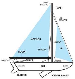 Given on the next page is a picture of a yacht. Label the parts of the yacht using the terms given in the box.