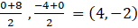 The co-ordinates of mid-point of the line segment joining the points P (0, – 4) and B (8, 0) are ![]()