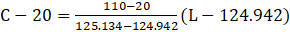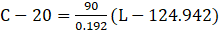 ⇒ 0.192 (C – 20) = 90 (L – 124.942)