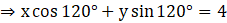 The above equation is of the form x cos θ + y sin θ = p, where θ = 120° and p = 4.