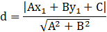 Perpendicular distance (d) of a line Ax + By + C = 0 from a point (x1, y1) is given by