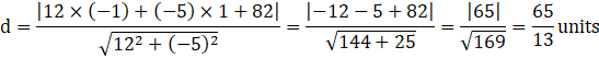 Comparing equation (1) with general equation of line Ax + By + C = 0, we obtain A = 12, B = –5, and C = 82