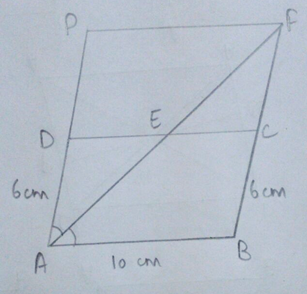 In a parallelogram ABCD, AB = 10 cm and AD = 6 cm. The bisector of ∠A meets DC in E. AE and BC produced meet at F. Find the length of CF.