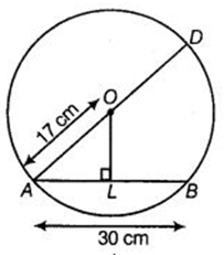 ∴ Radius of the circle = r = d/2 = AO = 17 cm
