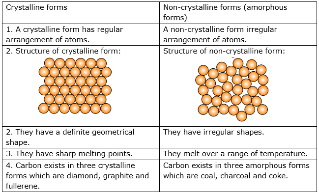 Difference between crystalline and non-crystalline forms of carbon: